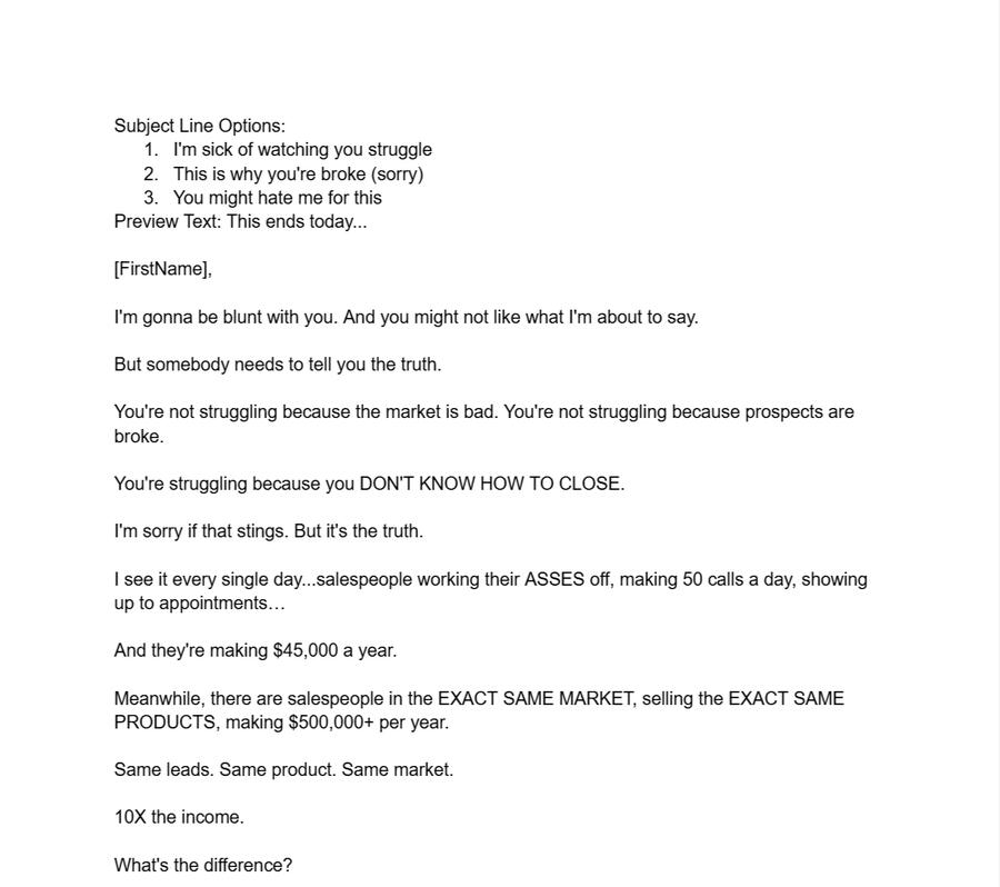 What's up, I’m Lucas. I help sales coaches stuck at six figures scale faster (without working harder or selling their soul).I write copy that makes your Stripe account look like it just did a line of Red bull and espresso.☕💸Fun fact: one of my clients called me “the guy who turned words into wire transfers.”Check out my samples and wins here. And if you’re ready to finally to escape the six-figure hamster wheel without adding more chaos, I’m taking on one more client this month.Email me at [email protected] and let’s chat :)